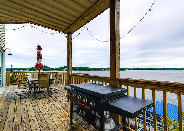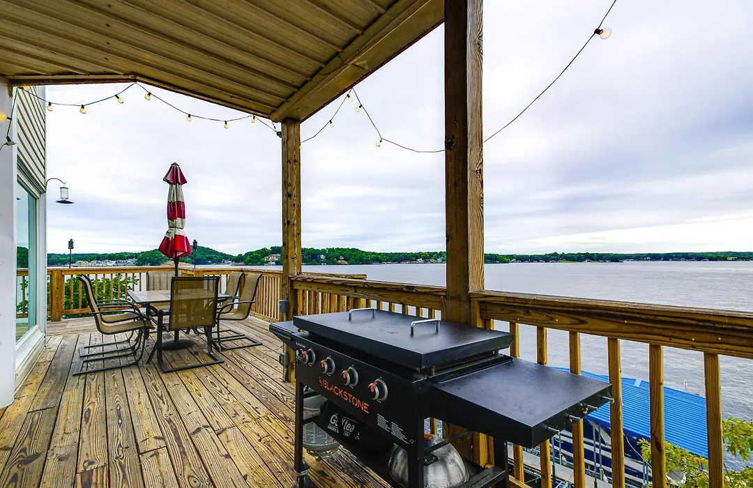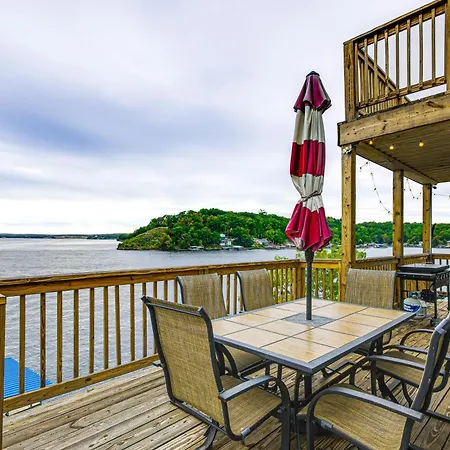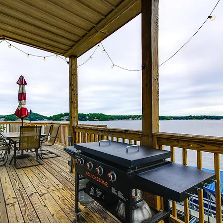 Private Dock And Boat Slip! Lake Of The Ozarks Haven villa offers self-catering amenities, such as an equipped kitchenette, and an outdoor dining area for guests' convenience. The kitchen also offers an oven, a stovetop, and kitchenware.